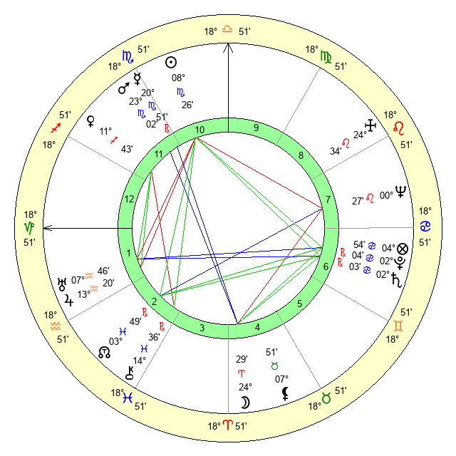 | Sun | 8 Scorpio 26 | 9 Scorpio 31 | 0 Pisces 59 |