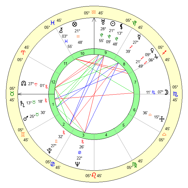 | Pluto | 27 Gemini 32 | 3 Aquarius 5 | 27 Gemini 29 |
