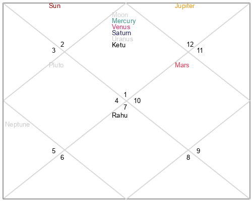 | Rahu | 7 Scorpio 35 | 24 Pisces 12 | 3 Scorpio 2 |