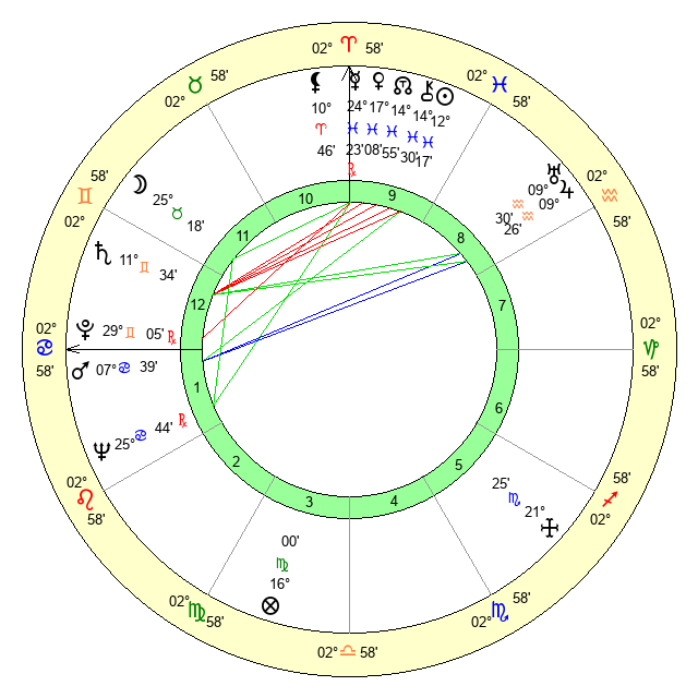 | Neptune | 25 Cancer 44 | 28 Pisces 59 | 26 Cancer 55 |