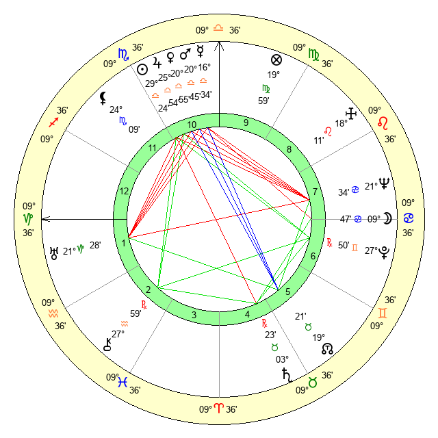 | Sun | 29 Libra 25 | 0 Scorpio 32 | 25 Aquarius 55 |