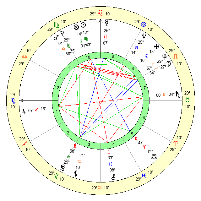 | Venus | 29 Virgo 36 | 13 Leo 13 | 17 Aquarius 39 |