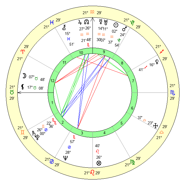 | Moon | 7 Taurus 47 | 24 Scorpio 1 | 16 Taurus 58 |