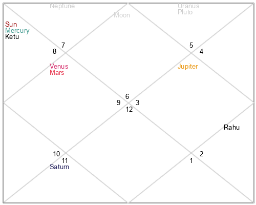 | Ketu | 4 Sagittarius 56 | 3 Libra 47 | 1 Sagittarius 49 |