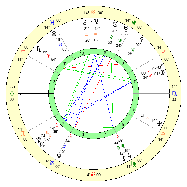 | Venus | 2 Capricorn 10 | 14 Pisces 48 | 26 Taurus 14 |