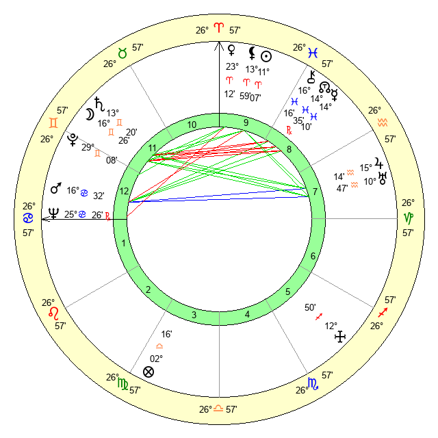 | Venus | 23 Aries 13 | 27 Pisces 13 | 7 Virgo 6 |