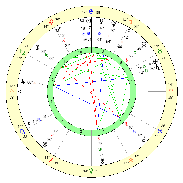 | Sun | 17 Cancer 32 | 18 Cancer 41 | 9 Scorpio 24 |