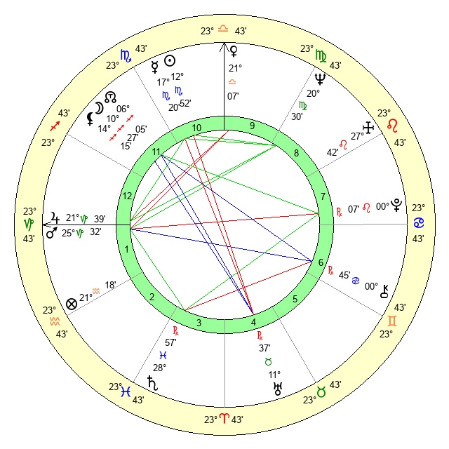 | Venus | 21 Libra 7 | 28 Libra 27 | 11 Aquarius 36 |