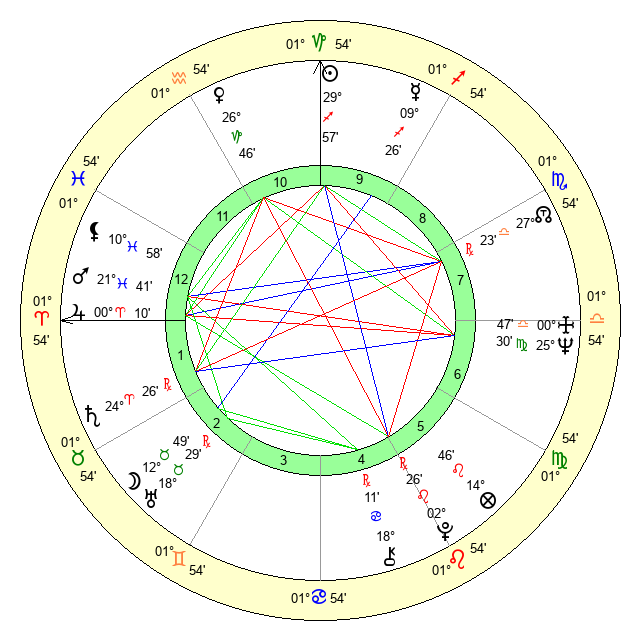 | Neptune | 25 Virgo 30 | 29 Pisces 24 | 24 Virgo 4 |