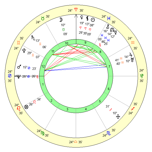 | Sun | 8 Aries 10 | 9 Aries 15 | 25 Cancer 11 |