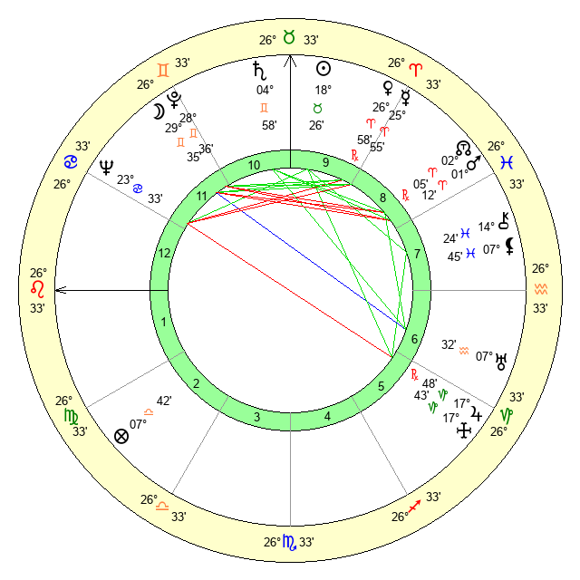 | Sun | 18 Taurus 26 | 19 Taurus 19 | 5 Virgo 43 |