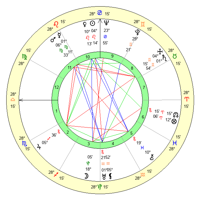 | Sun | 4 Leo 15 | 4 Leo 55 | 25 Scorpio 0 |