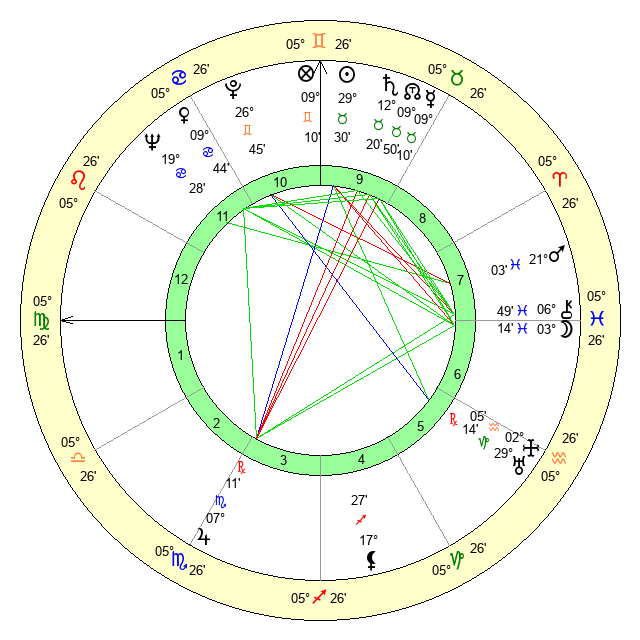 | Mars | 21 Pisces 5 | 15 Leo 41 | 3 Gemini 3 |