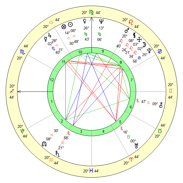 | Venus | 26 Virgo 44 | 16 Virgo 10 | 20 Capricorn 55 |