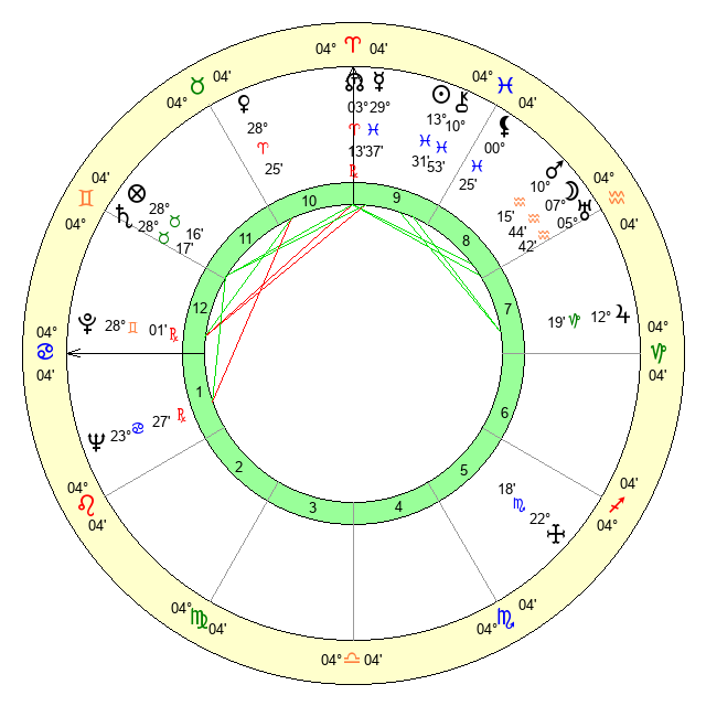 | Mars | 10 Aquarius 16 | 17 Cancer 28 | 5 Taurus 37 |