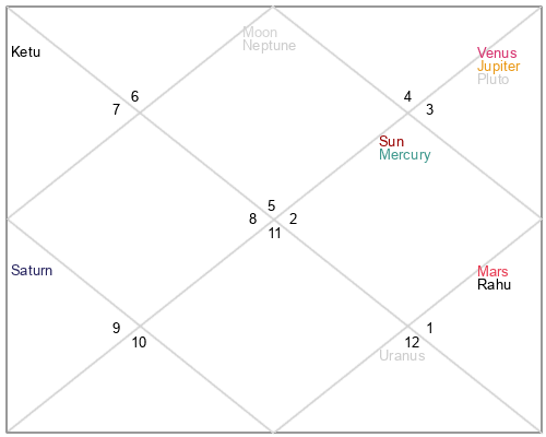 | Ketu | 0 Scorpio 51 | 23 Virgo 24 | 25 Libra 49 |