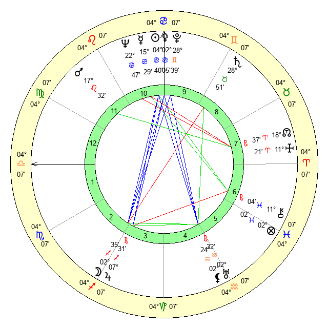 | Sun | 4 Cancer 40 | 5 Cancer 20 | 23 Libra 57 |