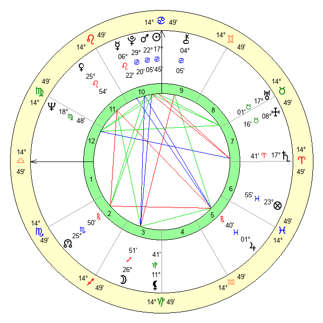 | Mars | 22 Cancer 5 | 13 Virgo 27 | 17 Virgo 39 |