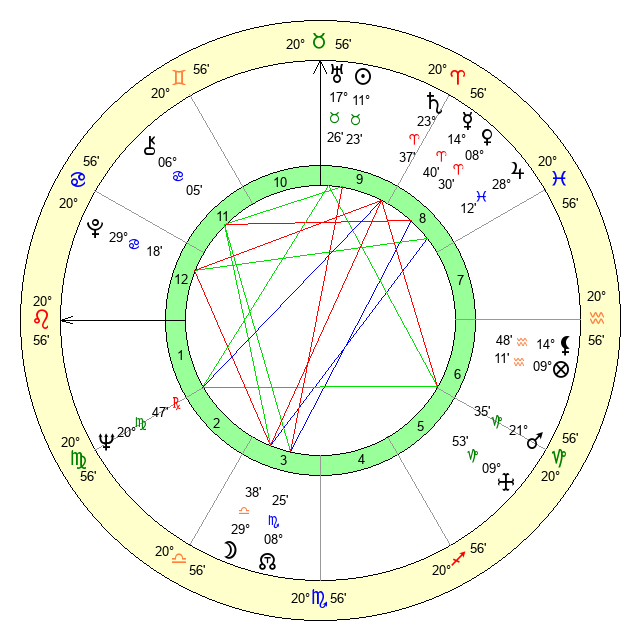 | Sun | 11 Taurus 23 | 12 Taurus 32 | 3 Leo 45 |