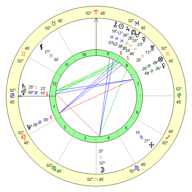 | Mars | 25 Aquarius 25 | 17 Cancer 22 | 19 Taurus 35 |