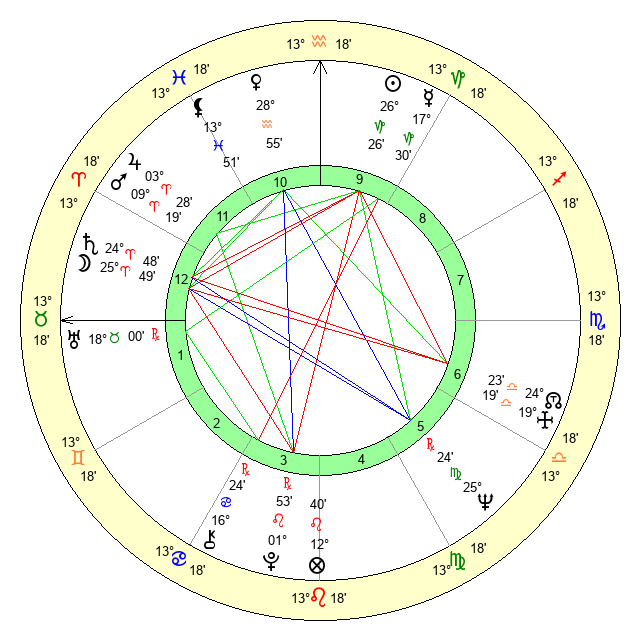 | Moon | 25 Aries 46 | 12 Virgo 30 | 4 Gemini 58 |