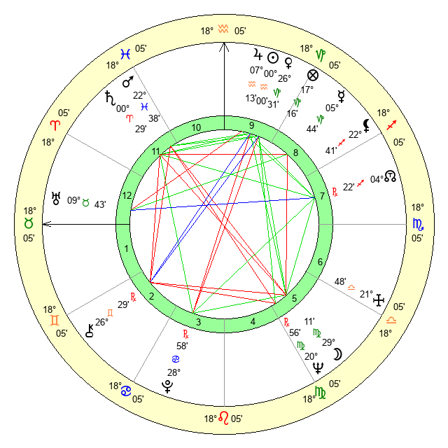| Jupiter | 7 Aquarius 9 | 11 Gemini 38 | 26 Aquarius 7 |