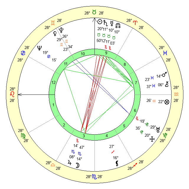 | Mars | 14 Pisces 25 | 11 Leo 10 | 29 Taurus 8 |
