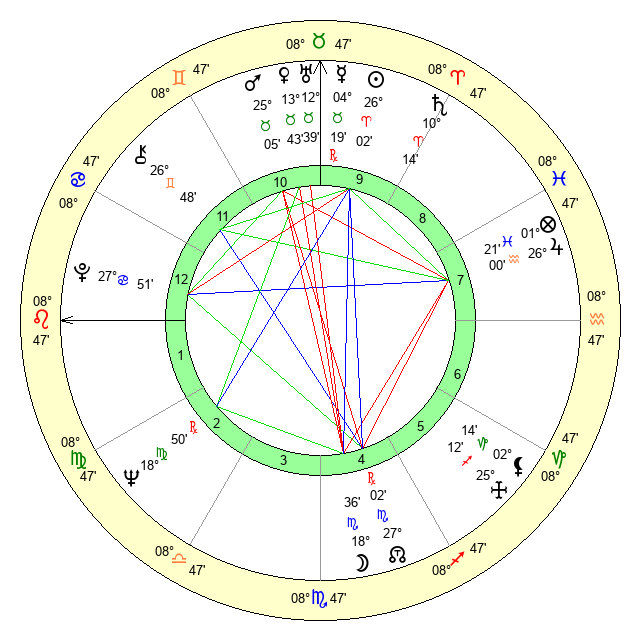 | Venus | 13 Taurus 43 | 24 Pisces 54 | 28 Leo 13 |