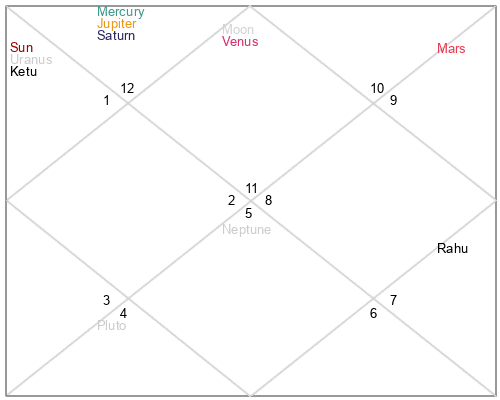Note: This birth chart is calculated using the date and place of birth, with the time set to noon (12:00 PM) local time. While this provides accurate planetary positions for most celestial bodies, the Ascendant (Rising Sign) and house cusps are not calculated since they require precise birth time. For a complete astrological analysis including houses and rising sign, please provide the exact birth time.