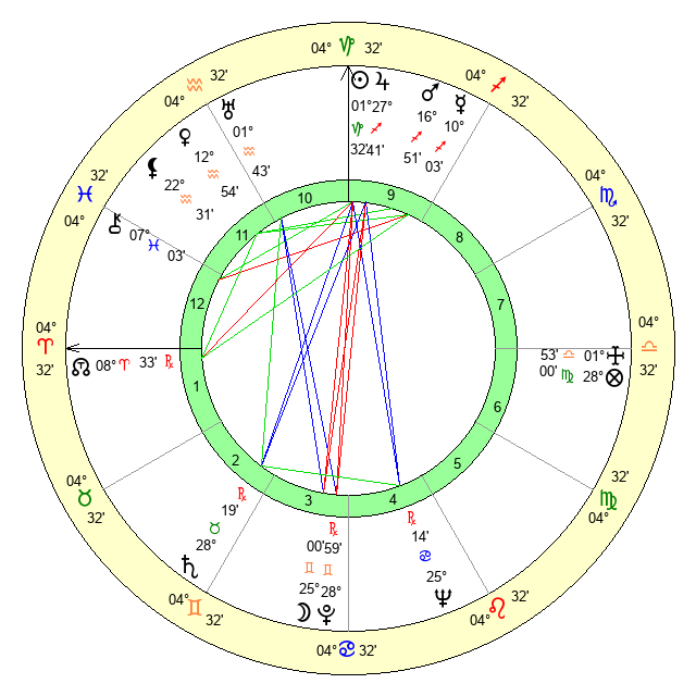 | Moon | 24 Gemini 55 | 13 Aquarius 6 | 14 Leo 36 |