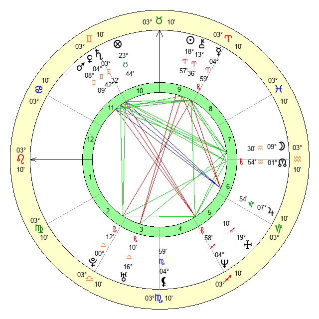 | Moon | 9 Aquarius 25 | 1 Virgo 40 | 19 Capricorn 58 |