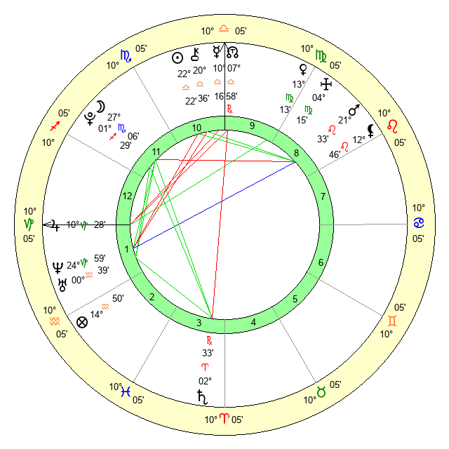 Venus | 13 Virgo 14 | 27 Scorpio 9 | 16 Libra 58 |
