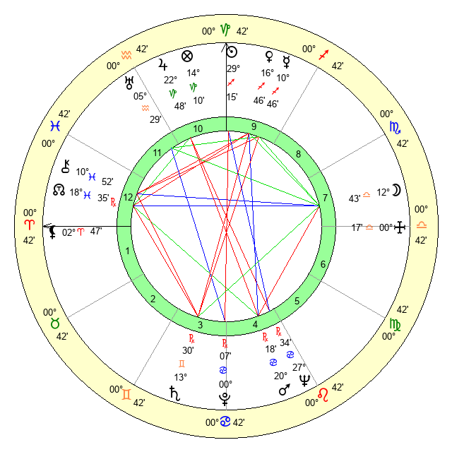 | Moon | 12 Libra 43 | 18 Capricorn 21 | 22 Scorpio 22 |