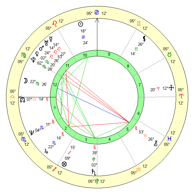 | Venus | 2 Virgo 20 | 7 Gemini 34 | 0 Virgo 55 |