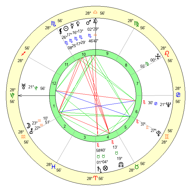 | Moon | 23 Aquarius 9 | 29 Cancer 33 | 14 Taurus 30 |