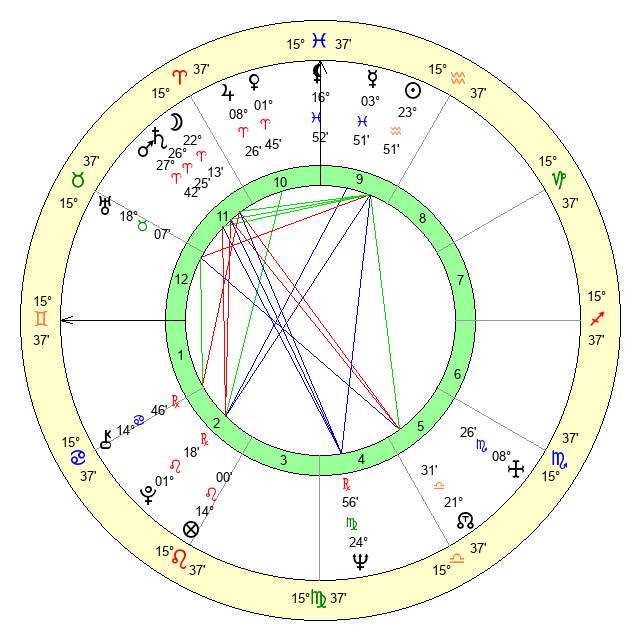 | Moon | 22 Aries 11 | 8 Virgo 8 | 1 Gemini 55 |