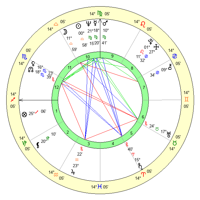 | Mars | 10 Virgo 41 | 1 Scorpio 36 | 5 Scorpio 27 |