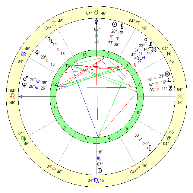 | Sun | 20 Aries 57 | 22 Aries 3 | 7 Leo 37 |