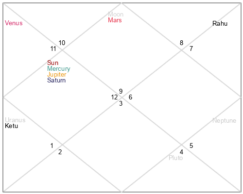 | Rahu | 9 Scorpio 36 | 26 Pisces 12 | 5 Scorpio 2 |