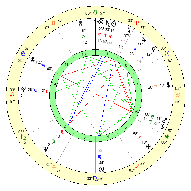 | Saturn | 21 Aries 0 | 25 Pisces 33 | 0 Taurus 6 |