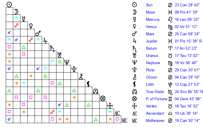 | Neptune | 18 Virgo 56 | 2 Aries 7 | 21 Virgo 52 |