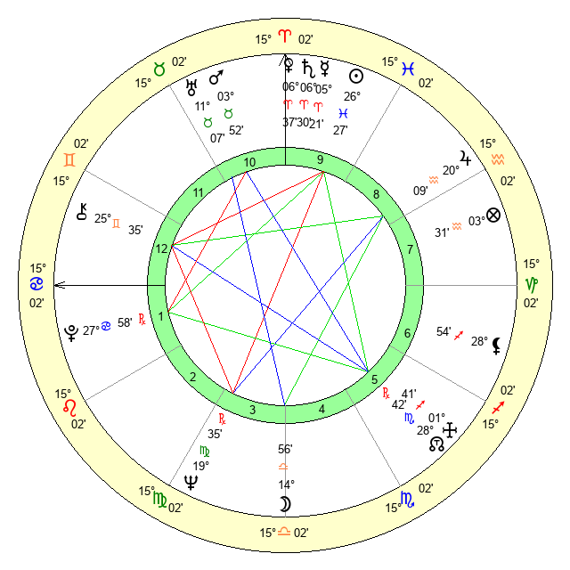 | Pluto | 27 Cancer 58 | 3 Aquarius 17 | 28 Cancer 37 |