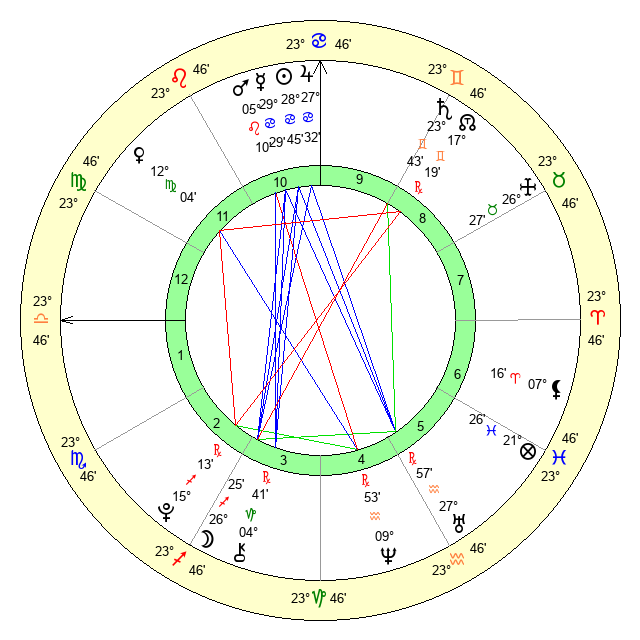 | Sun | 28 Cancer 46 | 29 Cancer 11 | 20 Leo 46 |