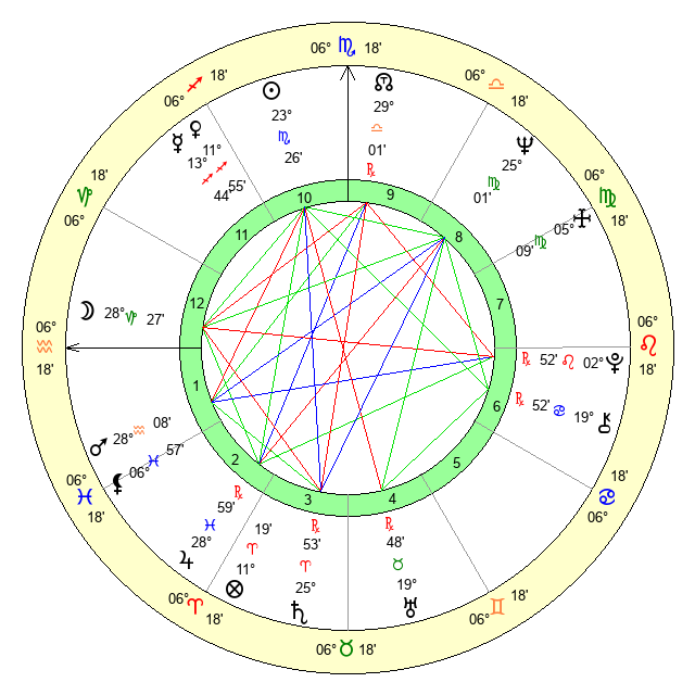 | Moon | 28 Capricorn 36 | 15 Libra 38 | 16 Pisces 47 |