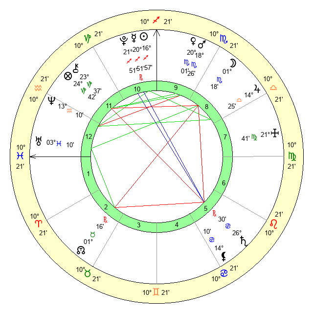 Mars | 18 Scorpio 27 | 6 Leo 9 | 2 Sagittarius 6 |