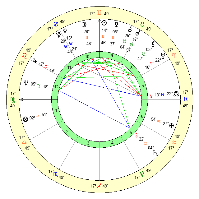 | Sun | 14 Gemini 47 | 15 Gemini 17 | 13 Virgo 52 |