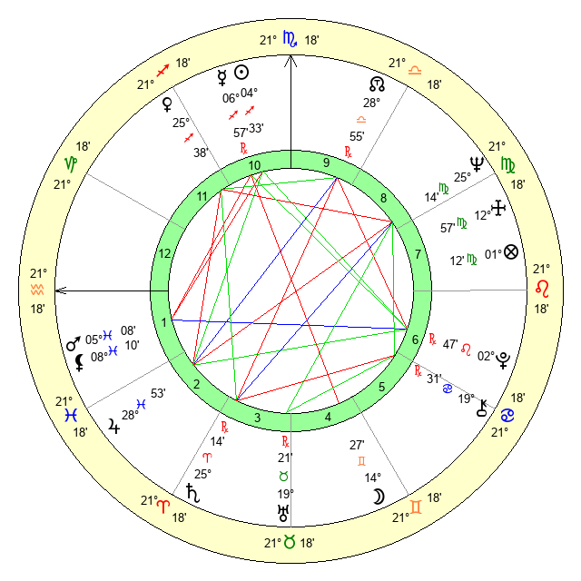 | Mercury | 6 Sagittarius 57 | 21 Scorpio 4 | 17 Pisces 48 |