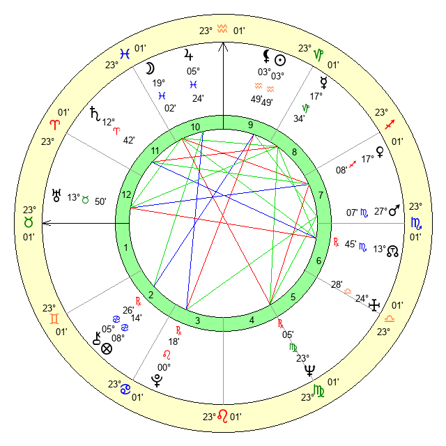 | Neptune | 23 Virgo 5 | 27 Pisces 46 | 20 Virgo 59 |