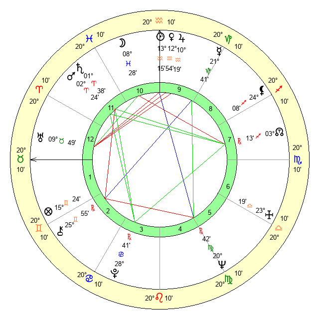 | Saturn | 1 Aries 45 | 17 Pisces 33 | 12 Aries 2 |