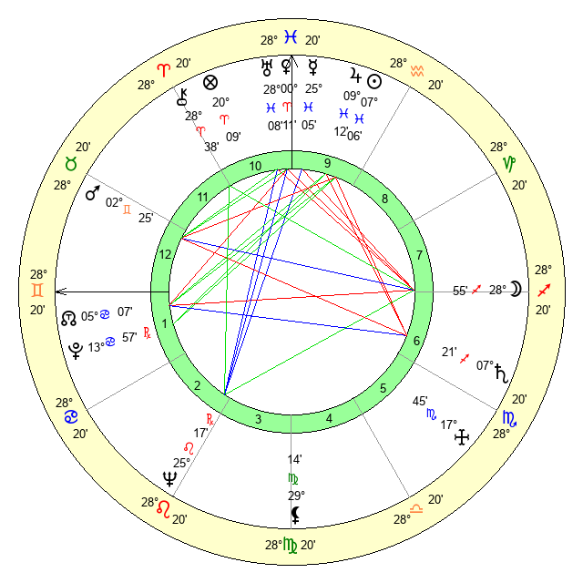 | Jupiter | 9 Pisces 9 | 12 Gemini 6 | 29 Pisces 43 |